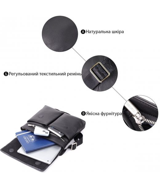 Чоловіча сумка через плече із зернистої натуральної шкіри Tony Perotti 20865_1 (9270G-25 nero) Чорний