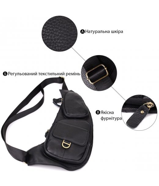Чоловіча сумка через плече із зернистої натуральної шкіри Vintage 22964 Чорний