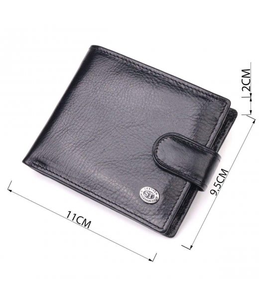 Чоловічий гаманець з натуральної гладкої шкіри у два додавання ST Leather 19409 Чорний