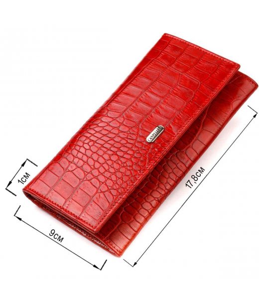 Оригінальний жіночий гаманець з натуральної фактурної шкіри з тисненням під крокодила CANPELLINI 21827 Червоний