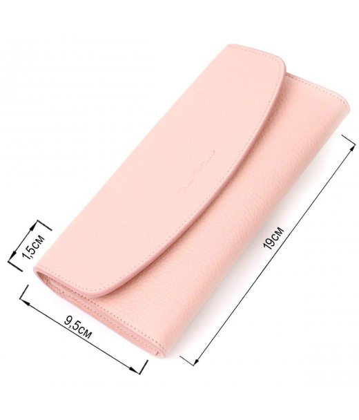 Лаконічний жіночий гаманець з натуральної шкіри флотар, для якої характерна міцність, зносостійкість та зерниста фактура. Аксесуар складається з одного широкого відділення для купюр, дванадцяти осередків для пластикових карток, однієї прилеглої кишені та монетниці на блискавці. У виробі використано якісну фурнітуру золотистого кольору. Закривається гаманець клапаном на кнопку. Купуючи цей шкіряний гаманець, Ви не тільки отримуєте стильну річ, але й отримуєте якісний аксесуар, який прослужить не один рік