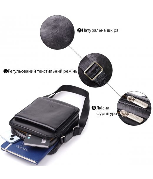 Відмінна чоловіча сумка з кишенями з гладкої натуральної шкіри Tony Perotti 20857_1 (9148-17 nero) Чорний