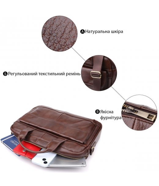 Портфель для чоловіків із натуральної шкіри Vintage 23040 Коричневий
