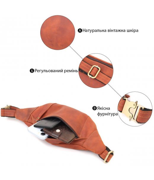 Практична сумка-бананка для чоловіків із натуральної вінтажної шкіри Shvigel 23122 Рудий