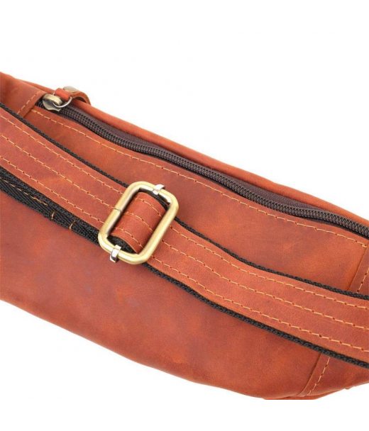 Аксесуар виконаний із міцної натуральної вінтажної шкіри з благородною текстурою та доповнений якісною металевою фурнітурою. Усередині - одне основне відділення на блискавці, що надійно захищає вміст. Регульований текстильно-шкіряний ремінь дозволяє підлаштувати посадку під себе - носіть як на поясі, так і через плече.