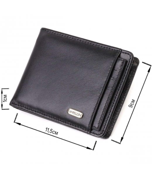 Практичний компактний гаманець із вкладишем для посвідчення для чоловіків з натуральної гладкої шкіри CANPELLINI 21876 Чорний
