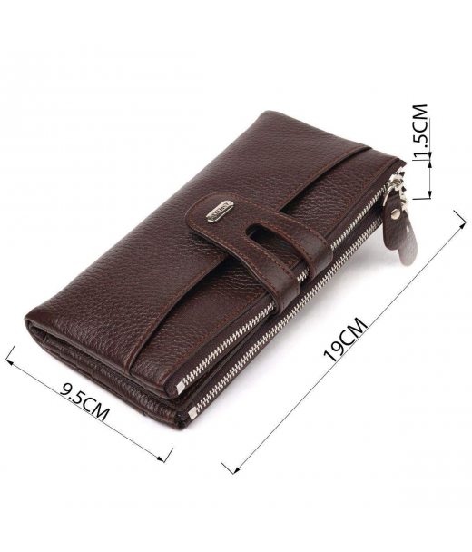 Місткий жіночий гаманець із натуральної зернистої шкіри. Аксесуар має два широкі основні відділення, в які поміщаються купюри всіх номіналів, дві монетниці, двадцять чотири кишені для карток, дві відкриті кишені зовні та одне прозоре віконце для документів. Закривається аксесуар хлястиком на кнопку. Якщо Ви хочете порадувати себе та здивувати близьких, то неодмінно купуйте шкіряні аксесуари в нашому магазині, якість і ціна Вас однозначно порадує.