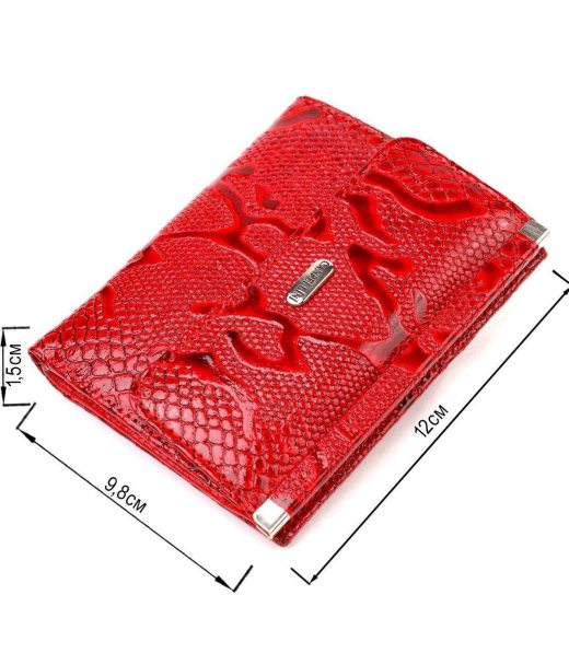 Лакований жіночий гаманець середнього розміру з натуральної шкіри з тисненням під рептилію. Аксесуар має одне основне відділення з тканинною перегородкою в яке поміщаються купюри всіх номіналів, п'ять кишень для карток (одна під сіточкою), дві приховані кишені та монетницю. Закривається аксесуар у два складання на кнопку. Купуючи шкіряний аксесуар цієї фірми, собі чи на подарунок, будьте певні, що він прослужить Вам не один рік.