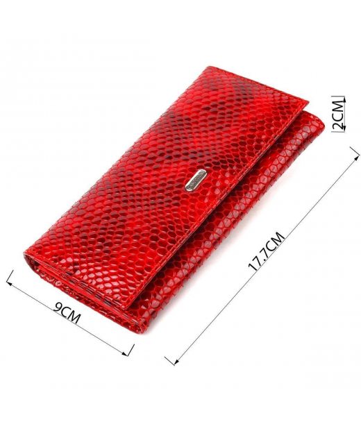 Жіночий яскравий гаманець з натуральної фактурної шкіри з тисненням під змію. Аксесуар має три широкі відділення для купюр, з двома перегородками, одна перегородка закривається на блискавку, містку монетницю зовні, чотири приховані кишені та шість кишень для карток. Закривається аксесуар клапаном на кнопку. Якщо Ви хочете порадувати себе та здивувати близьких, то неодмінно купуйте шкіряні аксесуари в нашому магазині, якість і ціна Вас однозначно порадує.
