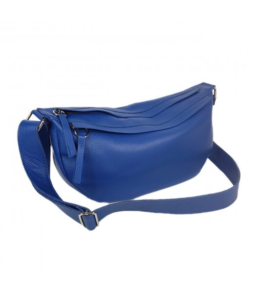 Сумка женская бананка "Джой" натуральная кожа, синий флотар