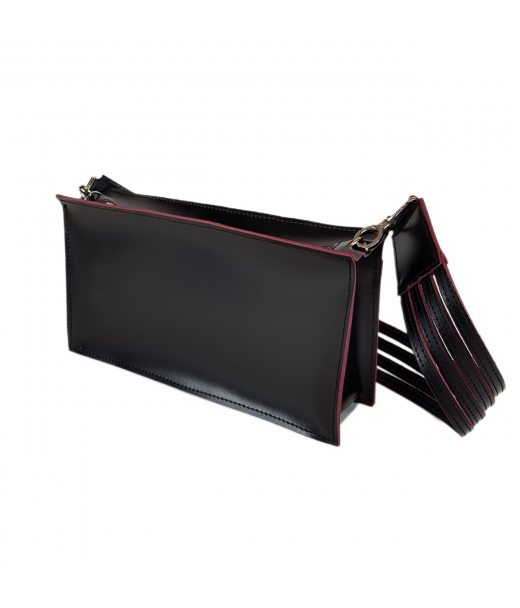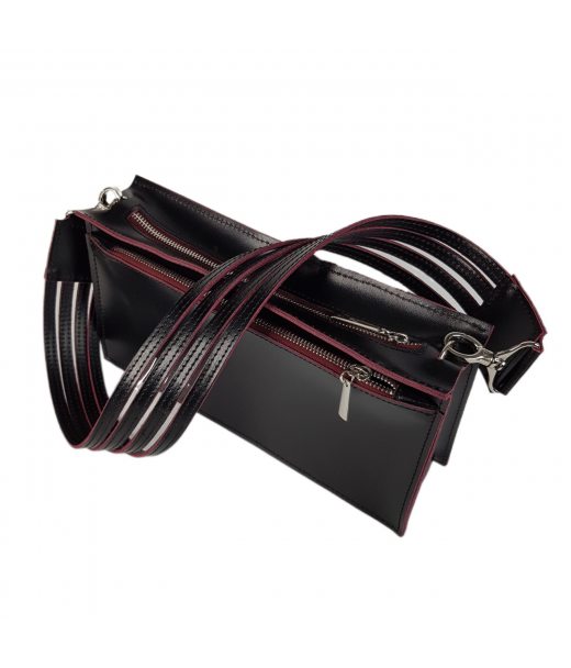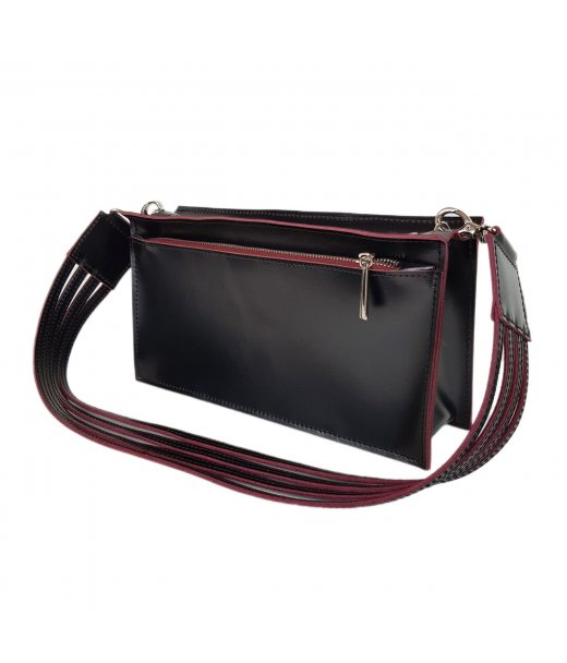 Сумка женская "Паола" натуральная кожа,с дизайнерским ремнем, черная/бургунди