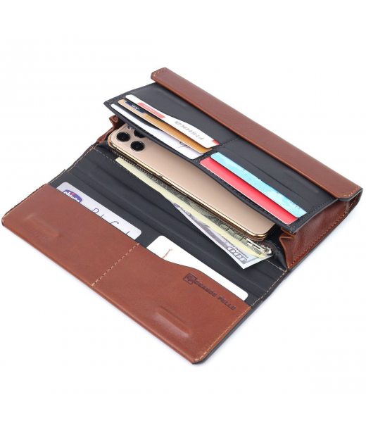 - 2 автономные части под клапанами с магнитами: первая для купюр и кредиток, вторая - для мобильного телефона;