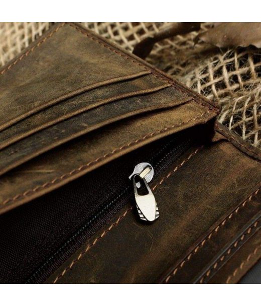 Современный, сверхкачественный кошелек коричневого цвета. Аксессуар выполнен из натуральной винтажной кожи, которую принято называть Crazy Horse (Крейзи Хорс). Отличительными особенностями такой кожи, являются потертости и неоднородность окраса, что придает изделию изюминку. Кошелек упакован в текстильный пылезащитный чехол белого цвета.