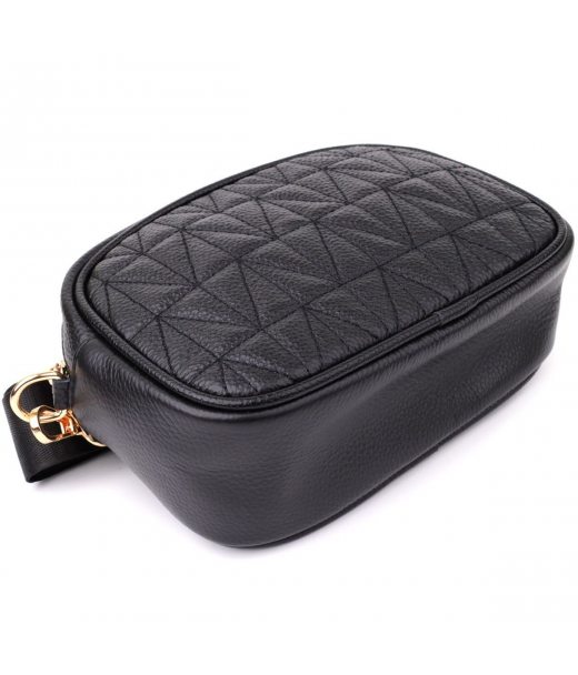 Компактная стеганая сумка для женщин из натуральной кожи Vintage 22894 Черный