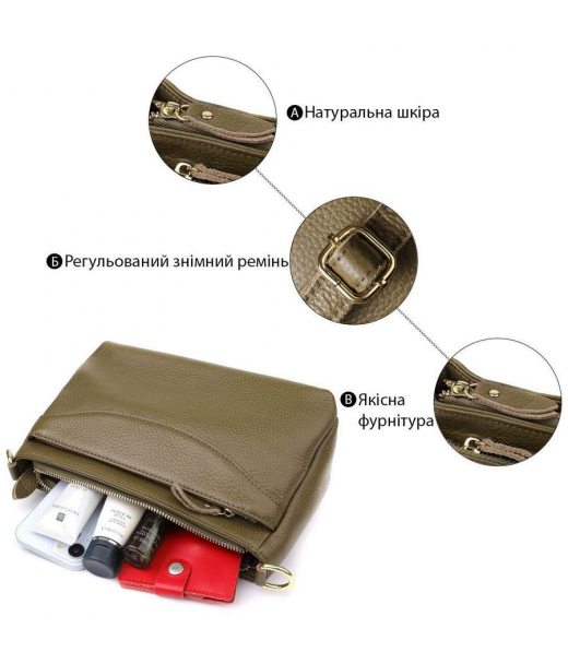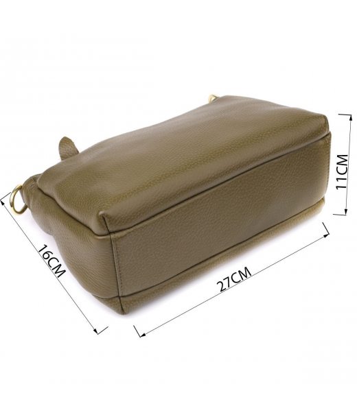 Эта оливковая кожаная сумка с формоустойчивым дном — идеальный выбор для женщины, которая ценит гармонию стиля, функциональности и качества.