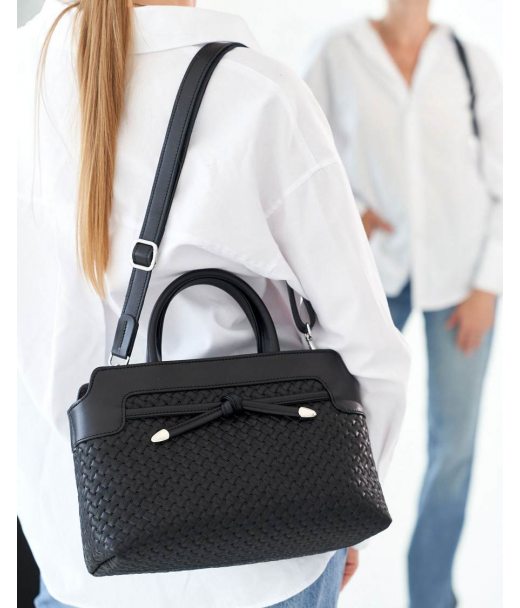 Кожаная женская сумка «Альта» черная плетеная WeLassie дешево
