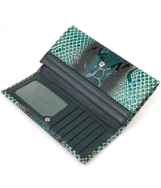 Лакированный кошелек для женщин из натуральной фактурной кожи с тиснением под рептилию CANPELLINI 21824 Зеленый