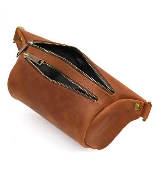 Сумка на пояс пошита из лошадиной кожи с металлической фурнитурой и молниями