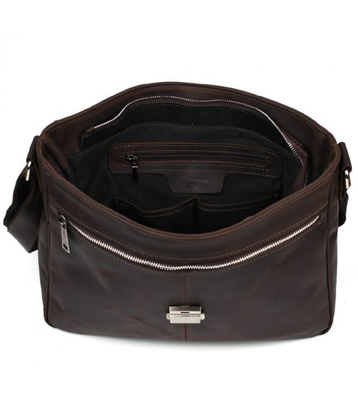 Для переноски ноутбука до 14" или документов формата А4 в основном отделении. Сумка через плечо формата А4 ТАРВА 1046 имеет одно отделение, внутри которого располагается мягкий отсек на хлястике с липучкой для маленького ноутбука или планшета. Также есть три кармана: один врезной с молнией, и еще два открытых для смартфона и портмоне. Мессенджер из крейзи хорс 1046 застегивается на молнию и сверху прикрывается кожаным клапаном с интересной застежкой-защелкой нового образца. Под клапаном имеется врезной большой карман. На задней стороне сумки также врезной карман. На задней стенке изделия внутри есть еще скрытый карман на всю плоскость сумки. Аксессуар наделен кожаным наплечным ремешком для удобства носки, с регулировкой длины.