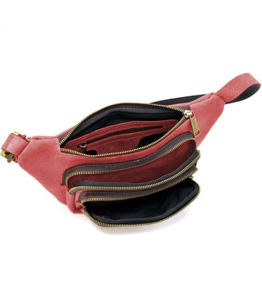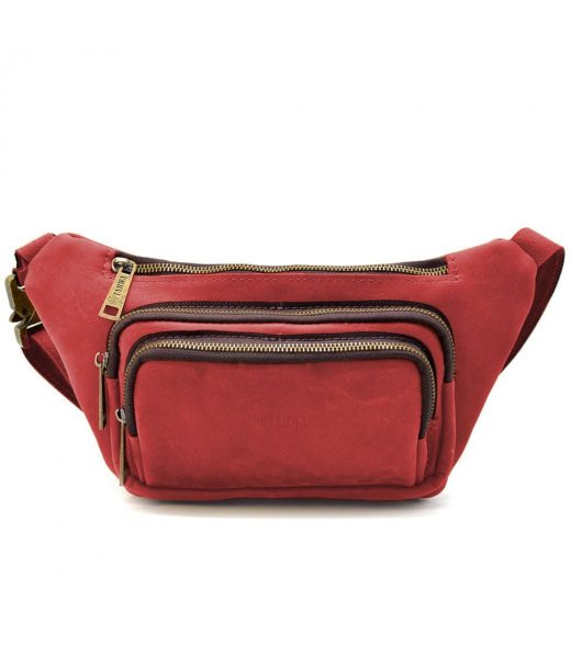 Кожаная бананка напоясная из лошадиной кожи красная RR-8179-3md TARWA