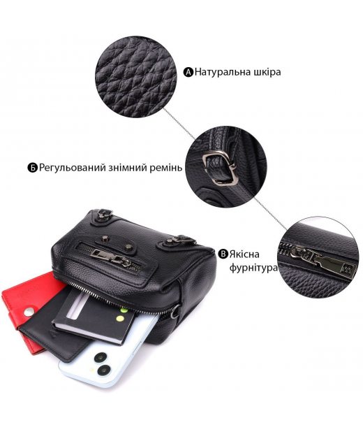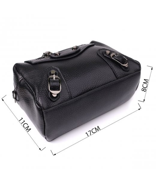 Модная женская сумка из натуральной кожи с актуальным декором Vintage 22922 Черный