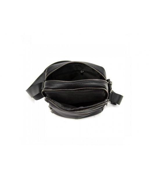 Сумка через плечо Tiding Bag A25F-6625A-1 из натуральной кожи в черном цвете, зернистой фактуры.