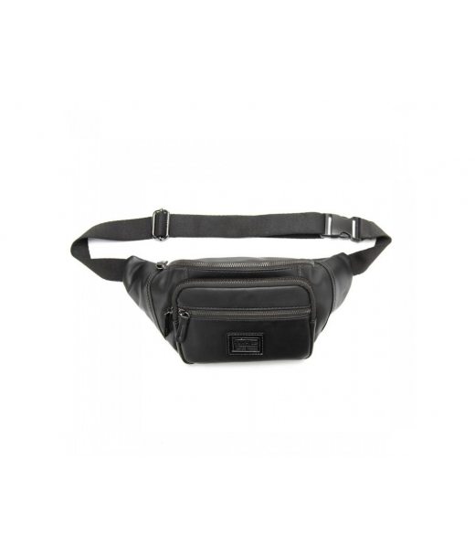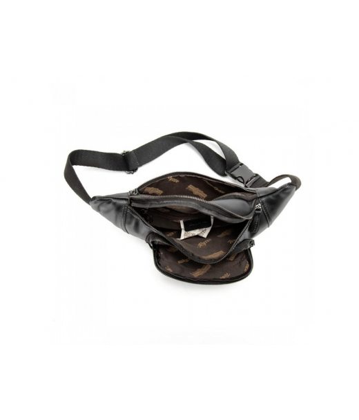 Мужская сумка на пояс сделана из натуральной кожи черного цвета.