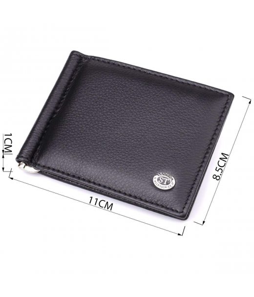 Мужской кошелек с металлическим зажимом из натуральной кожи ST Leather 23092 Черный