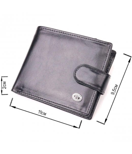 Надежный мужской бумажник из натуральной гладкой кожи ST Leather 19408 Черный
