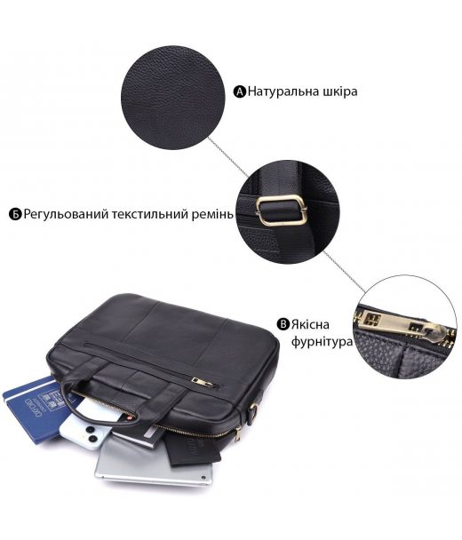 Чёрный цвет делает этот портфель универсальным выбором для любого образа — от строгого делового до повседневного. Это надежный и стильный помощник для работы, поездок и встреч.