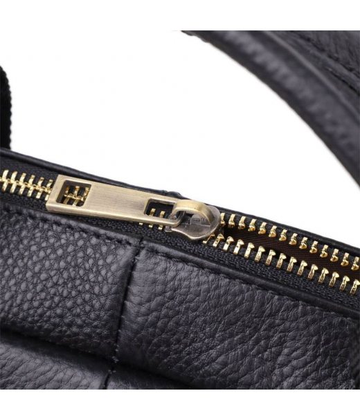 Фурнитура в оттенке "под латунь" придаёт модели благородный акцент и подчёркивает деловой характер. Для переноски предусмотрены две прочные кожаные ручки, а также съёмный регулируемый текстильный ремешок, который можно носить на плече или через плечо.