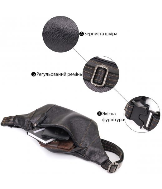 Сумка-бананка Shvigel в чёрной зернистой коже — это не просто аксессуар, а отражение характера, вкуса и уверенности. Отличный вариант как для себя, так и в подарок.