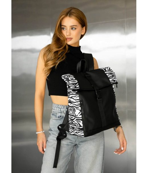 Женский рюкзак Sambag Roll Top One черный принт "Zebra"