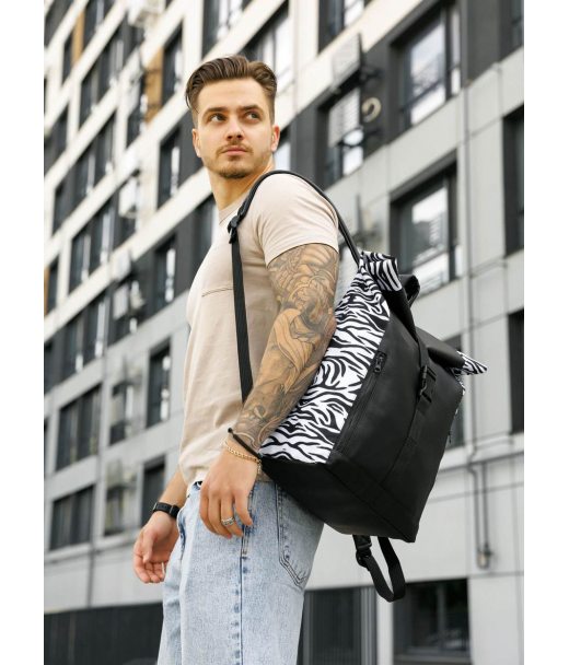 Чоловічий рюкзак Sambag Roll Top One чорний принт "Zebra"