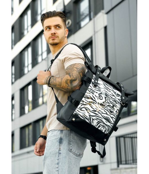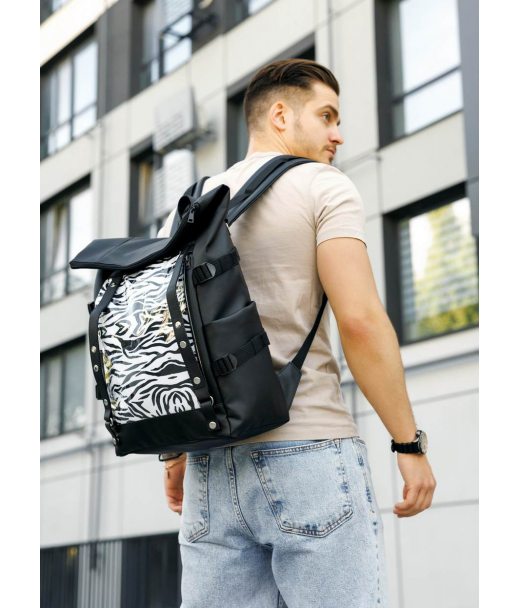 Рюкзак мужской Sambag RollTop Hacking черный принт "Zebra"