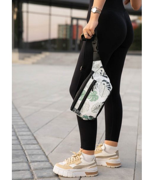 Большая женская поясная сумка-бананка Sambag Tirso Max с принтом "Листья"
