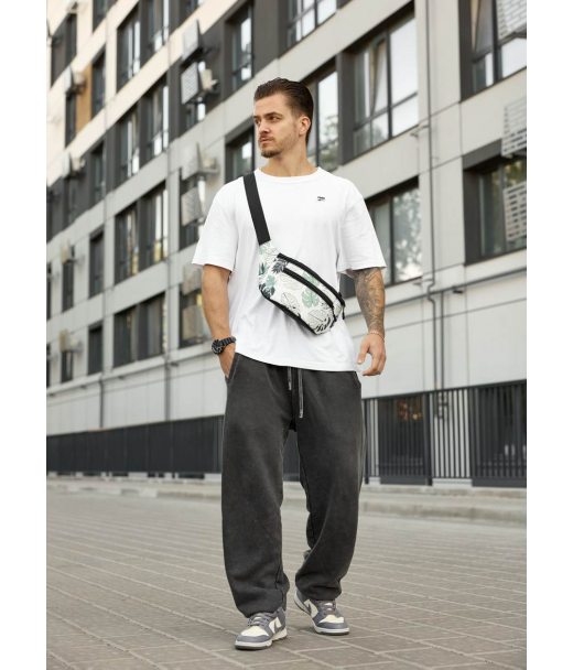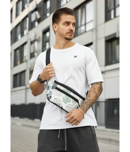 Велика чоловіча сумка на пояс бананка Sambag Tirso Max принт "Leaves"