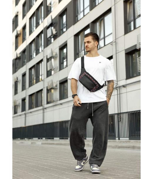 Велика чоловіча сумка на пояс бананка Sambag Tirso Max чорна принт