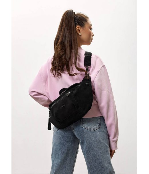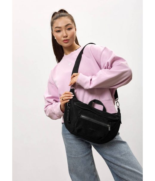 Женская замшевая сумка-бананка через плечо Sambag DistrictDart черная