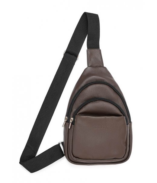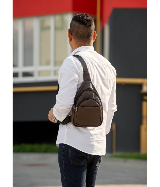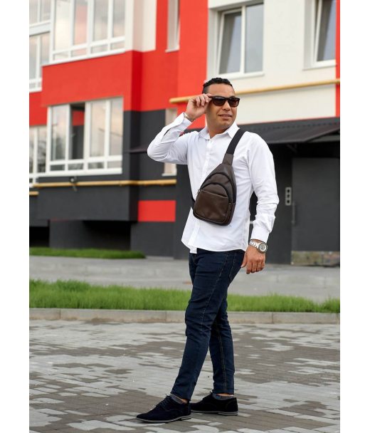 Мужская кожаная сумка слинг через плечо Sambag Brooklyn коричневая
