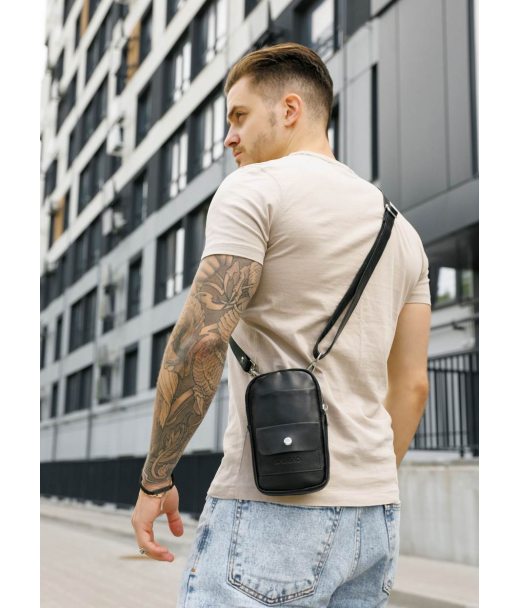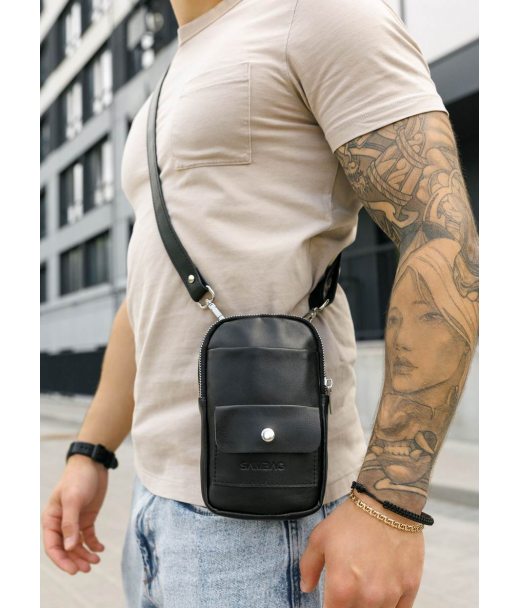 Чорна чоловіча шкіряна сумка Sambag Modena для телефону