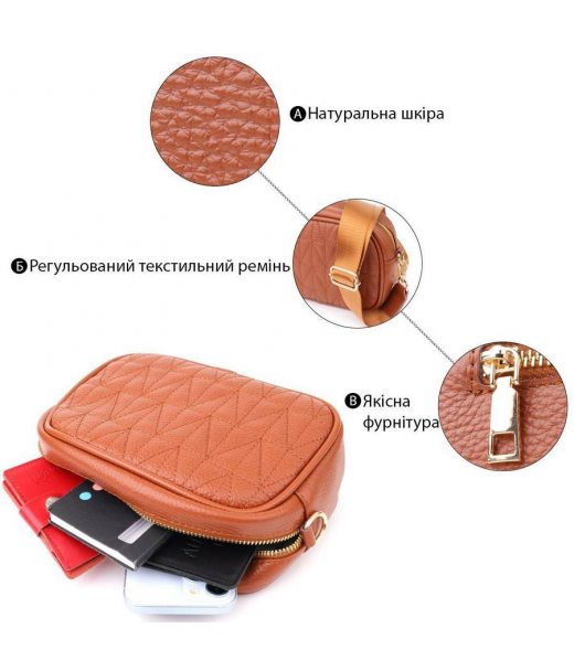 Стеганая сумка для женщин из натуральной кожи Vintage 22899 Рыжий
