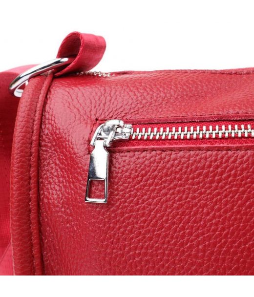 Женская кожаная сумка в насыщенном красном цвете выполнена из качественной зернистой кожи и имеет полукруглую аккуратную форму, подчеркивающую яркость и стиль образа. Особое внимание привлекает декоративный бегунок в виде стильного брелка, который придает модели индивидуальность и выразительность. Сумка закрывается на молнию, внутри расположено основное отделение с двумя карманами на молнии и двумя открытыми карманами для мелочей, на тыльной стороне есть внешний карман на молнии. Несъемный текстильный ремень обеспечивает комфортное ношение, а фурнитура под серебро гармонично оттеняет насыщенный красный тон кожи. Эта сумка станет эффектным и практичным аксессуаром для повседневных образов и особых случаев, сочетая стиль, функциональность и внимание к деталям.