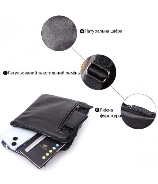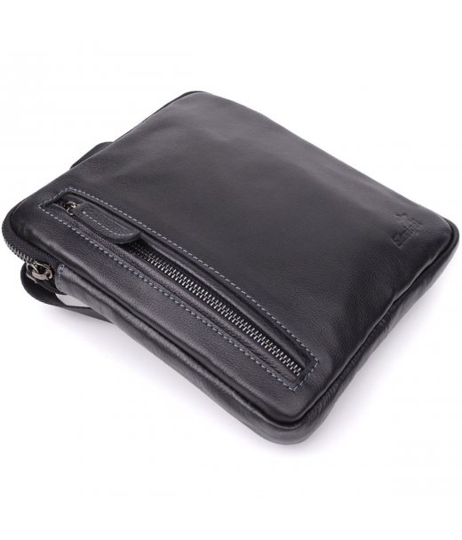 Сумка на плечо для мужчин из прочной зернистой кожи Shvigel 23152 Черный