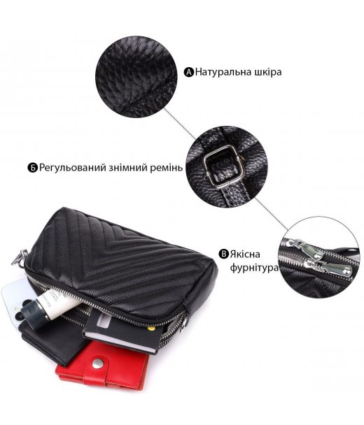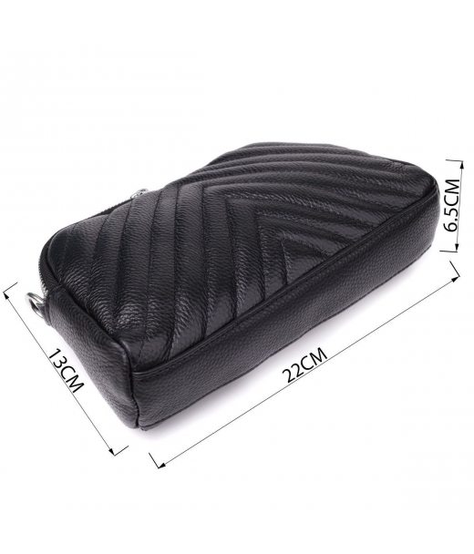 Сумка прошита треугольниками из натуральной кожи Vintage 22909 Черный