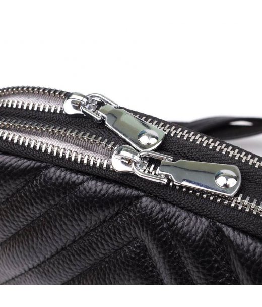 Эффектная черная кожаная сумка с оригинальной прострочкой в виде треугольников — это стильный аксессуар, сочетающий в себе современный дизайн и практичную конструкцию. Геометрический узор придает изделию динамичность и визуальную структуру, подчёркивая фактуру натуральной кожи и делая сумку особенно выразительной.