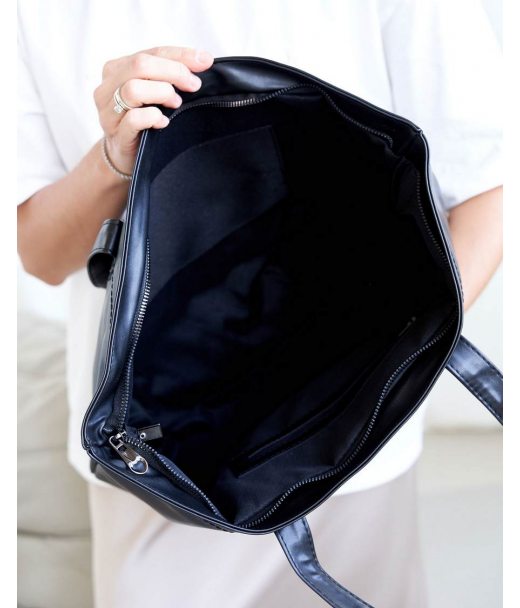 Сумка 71604, цвет черный, материал сумки высококачественная екокожа. Сумка открывается при помощи молнии. Внутри сумка имеет один открытый карман и карман на молнии. Сумка имеет ручку 15 см (от верха сумки).