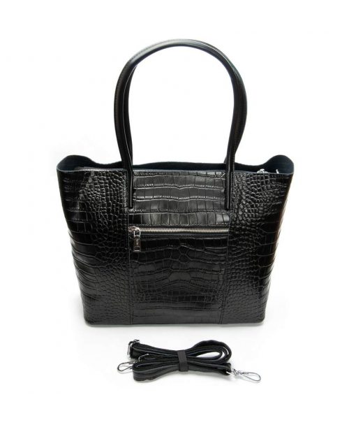 Закрывается на молнию. Внутри находится двойное отделение, разделенное карманом-перегородкой на молнии, открытый карман и боковой карман на молнии. Снаружи сумки на фасаде есть открытый карман, а на обратной стороне карман на молнии. Жесткое дно на металлических ножках.