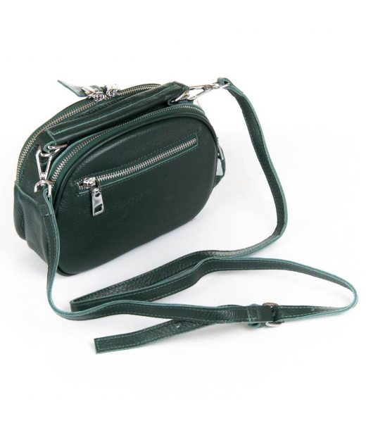 Женская кожаная сумочка. Мягкая кожа. Два отделения, закрываются на молнию. На фасаде есть большой карман под клапаном, а на обратной стороне на молнии.