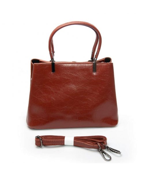 Три отделения, закрываются на общую молнию. Внутри центрального отделения находится боковой открытый карман и карман на молнии. Дно сумки жесткое.